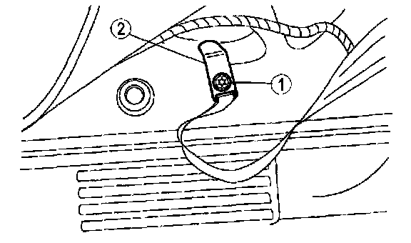 5. Remove the D-ring cover, D-ring nut (1) and disconnect D-ring (2).