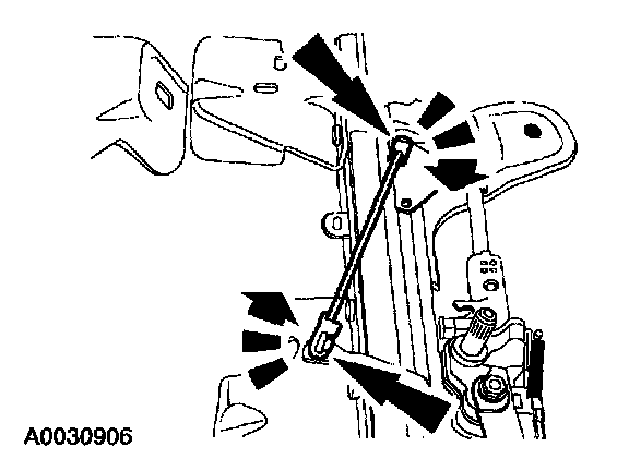 12. On supercab vehicles, unlatch the plastic locks. Remove the linkage.
