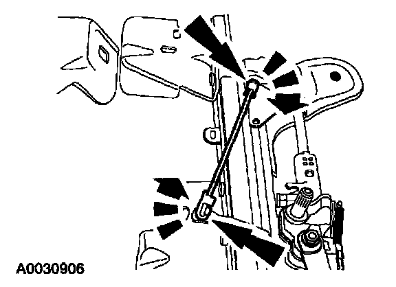 10. On supercab vehicles, unlatch the plastic locks and remove the linkage.