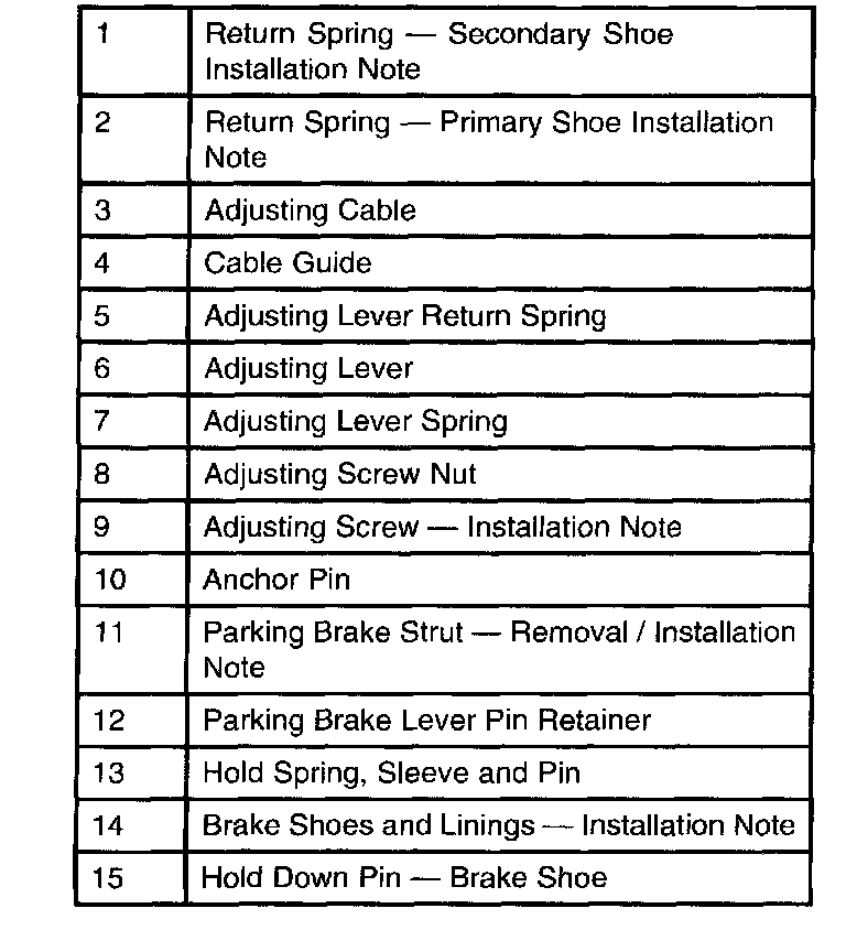 ^ The parking brake link spring and the brake parking spring retainer will come off with the parking brake strut.