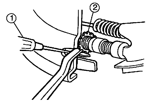 2. Release the brake shoe adjusting lever cable and check that the brake shoe adjusting lever advances to the next notch on the brake shoe adjusting screw nut.