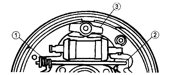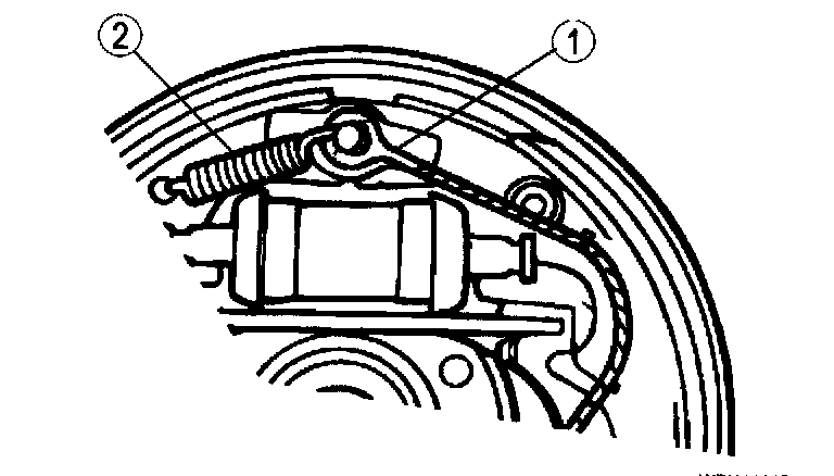 1. Pull the brake shoe adjusting lever cable and check that the brake shoe adjusting lever rotates the brake shoe adjuster assembly.
