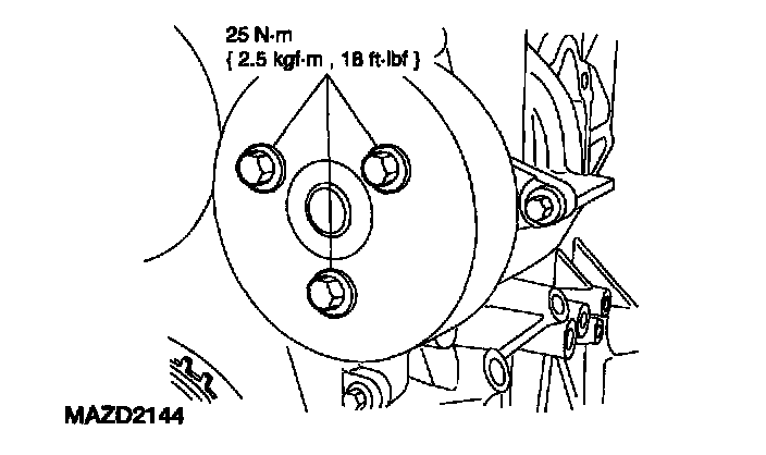3. Remove the bolts and the water pump pulley.