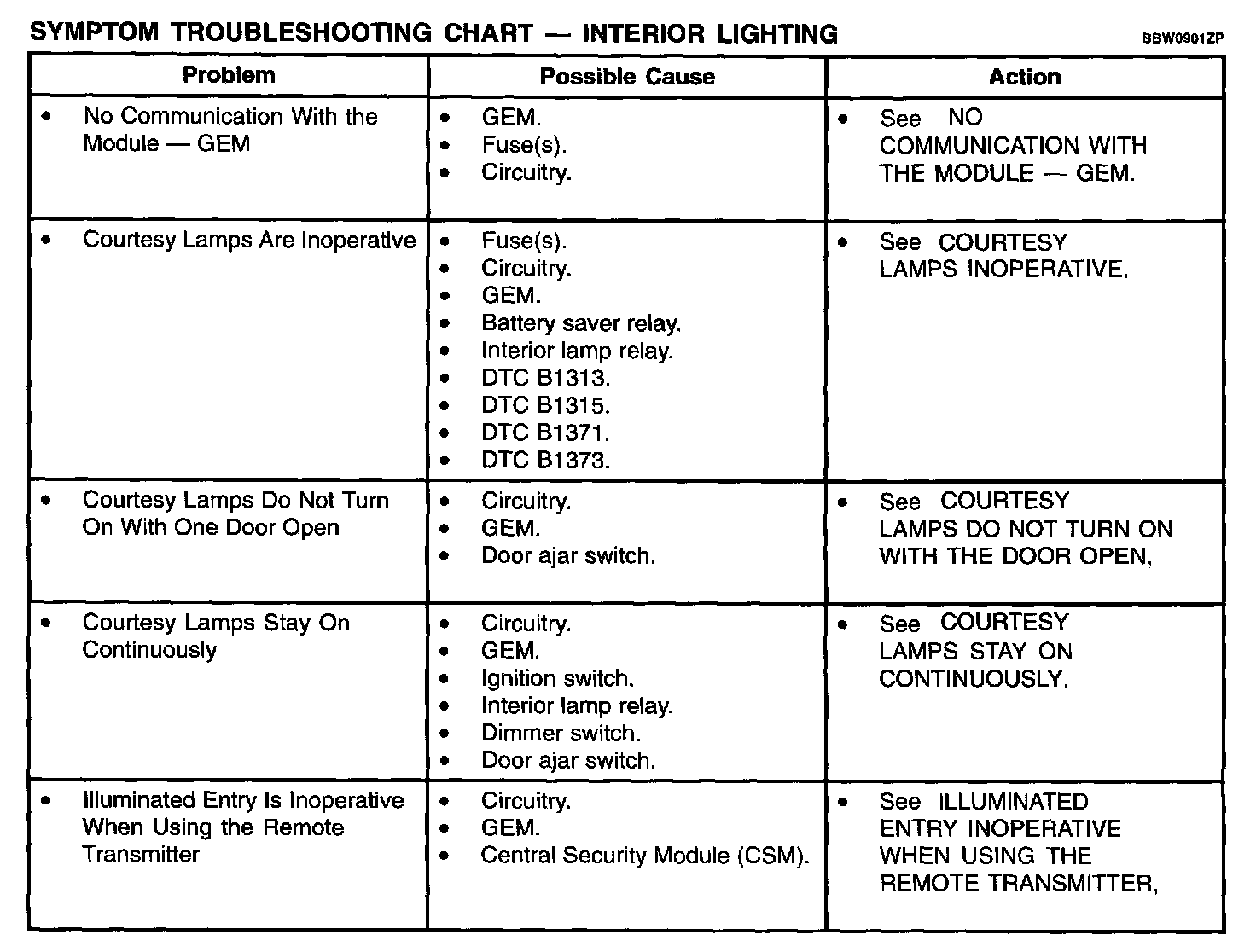 Symptom Troubleshooting Chart - Interior Lighting Part 2: