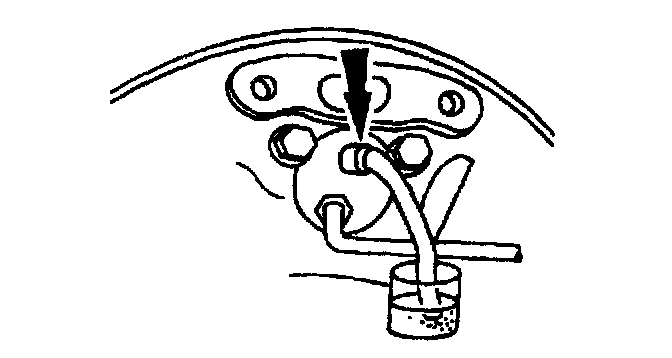 2. Place a box end wrench on the RH rear bleeder screw. Attach a rubber drain tube to the RH rear bleeder screw and submerge the free end of the tube in a container partially filled with clean brake fluid.