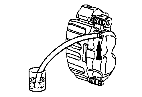3. Loosen the disc brake caliper bleeder screw until a stream of brake fluid comes out. While the assistant maintains pressure on the brake pedal, tighten the disc brake caliper bleeder screw.