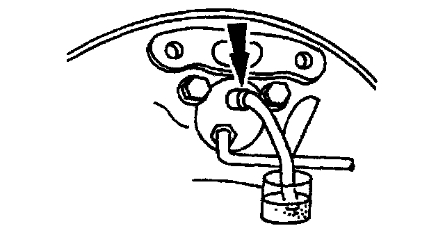 14. Connect one end of a flexible tube to the master cylinder bleeder screw. Submerge the other end in a container partially filled with the specified brake fluid.