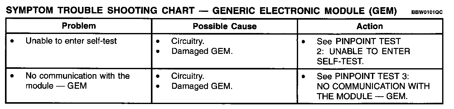 Symptom Troubleshooting Chart - Generic Electronic Module (GEM):