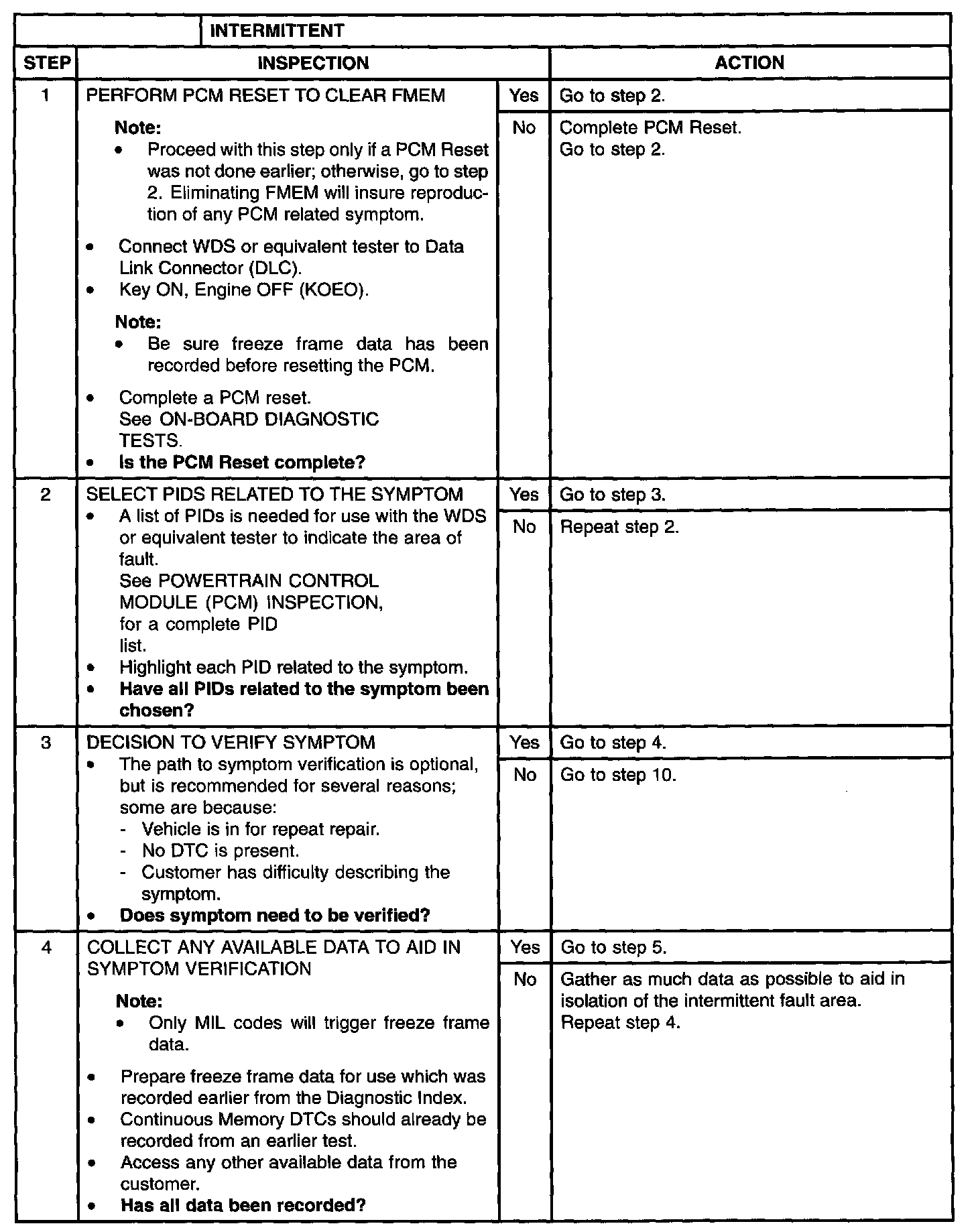 GENERAL PINPOINT TEST 4: INTERMITTENT