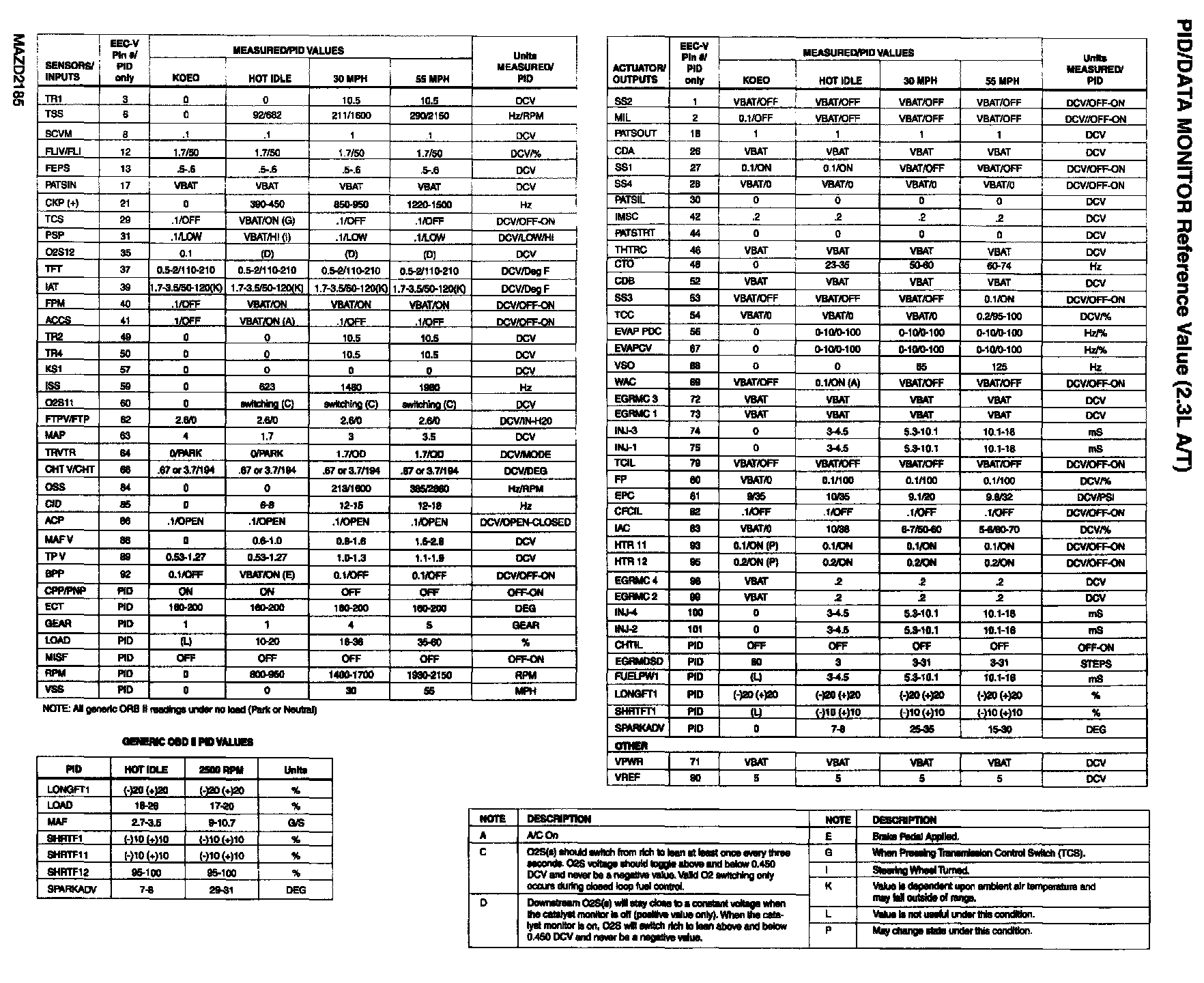 PID/Data Monitor Reference Value (2.3L A/T):