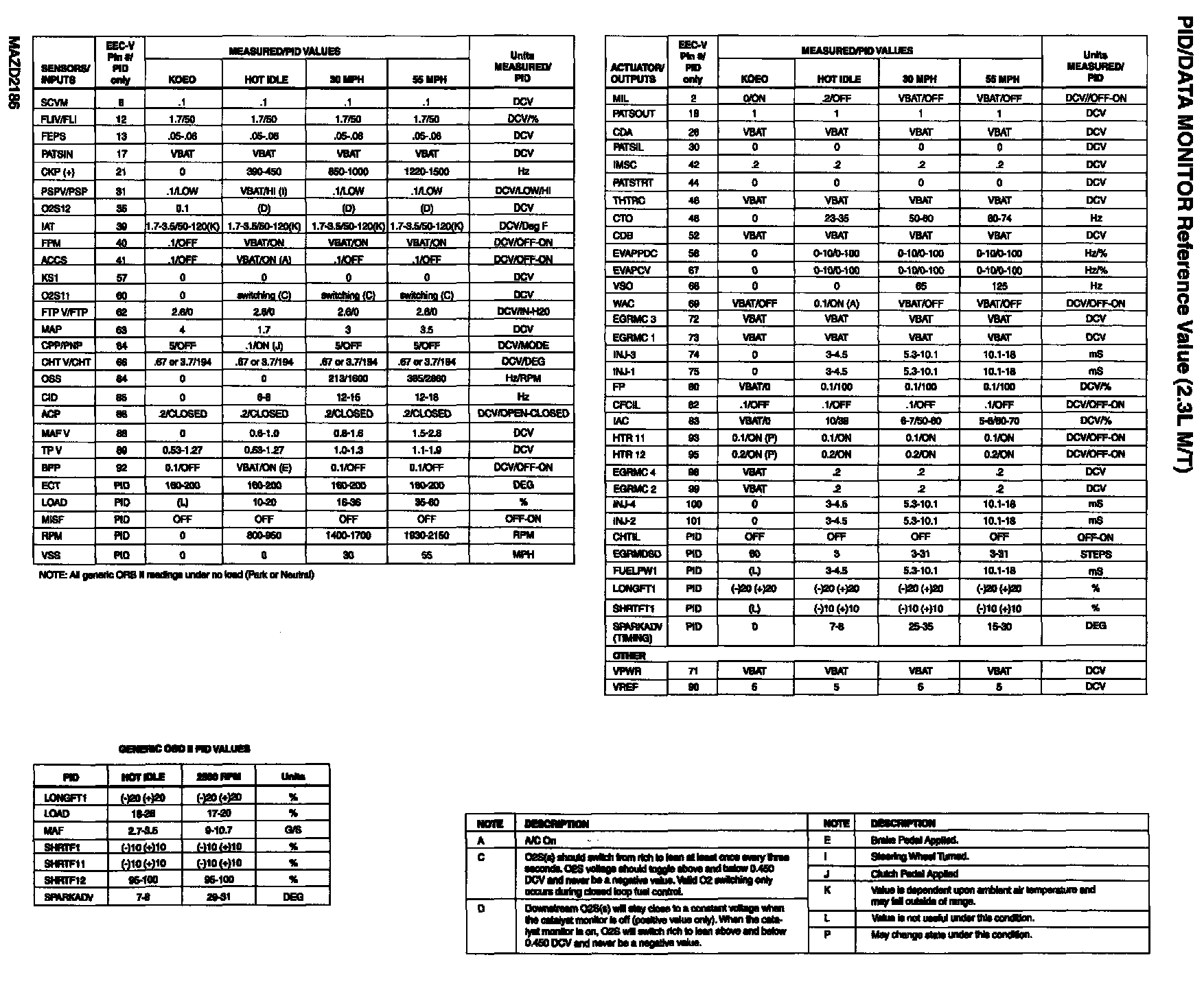 PID/Data Monitor Reference Value (2.3L M/T):