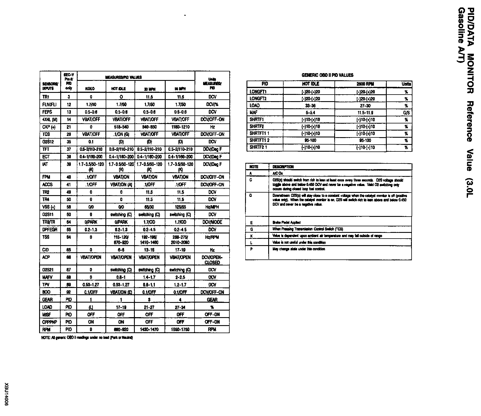 PID/Data Monitor Reference Value (4.0L A/T):