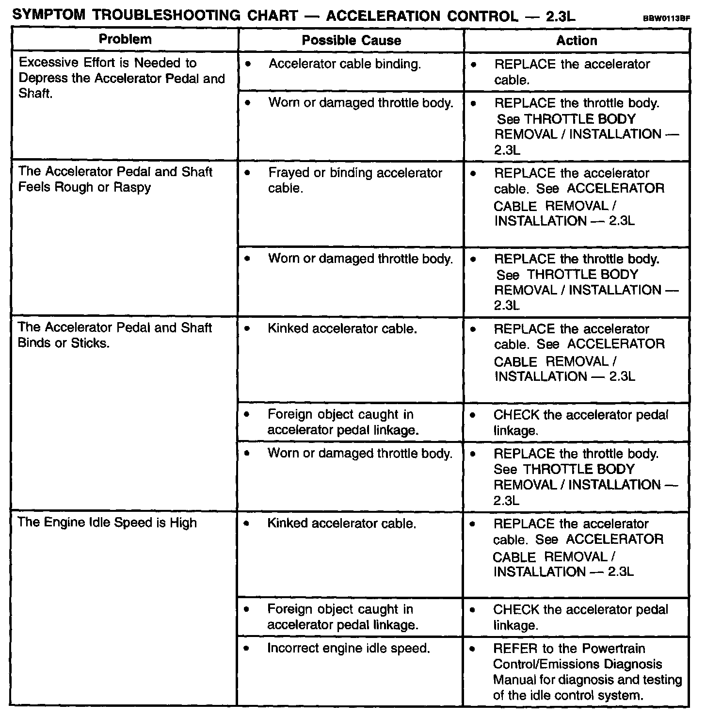 Symptom Troubleshooting Chart - Acceleration Control - 2.3L: