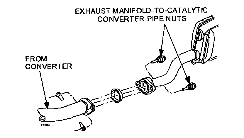 d. Exhaust manifold to catalytic converter pipe nuts (support the catalytic conveter and pipe in a neutral position while tightening) - Tightening Torque: 40 N.m (30 lb-ft).