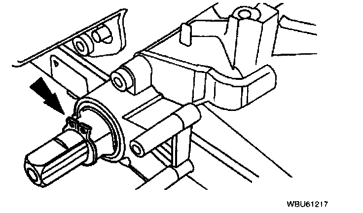14. Remove the steering column lock cylinder housing and the steering column shaft from the steering actuator housing.