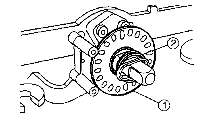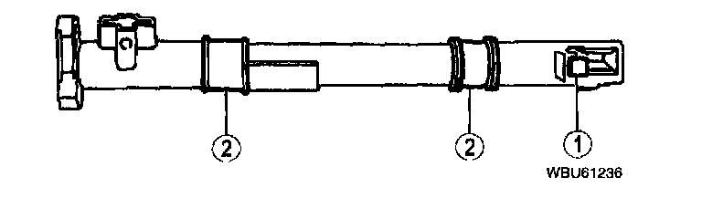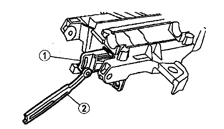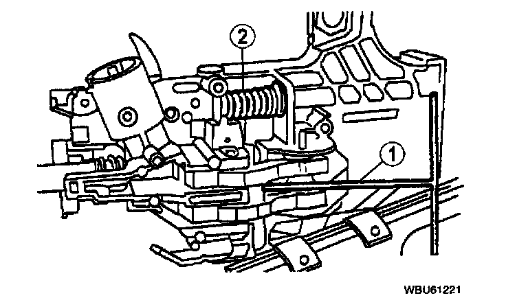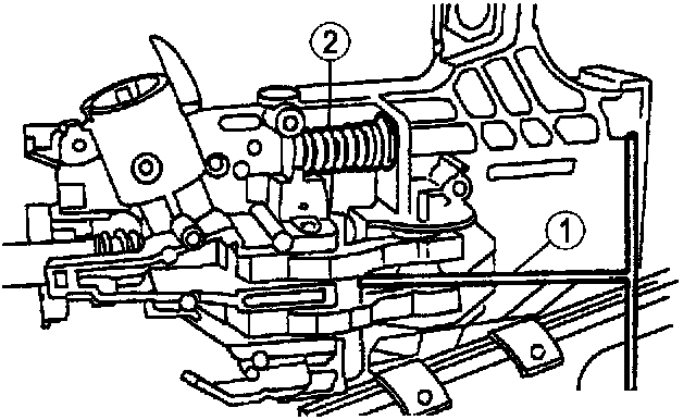 6. On automatic transmission equipped vehicles, install the transmission control selector lever spring clip (1) and the gearshift lever socket bushings (2) on the shift tube.