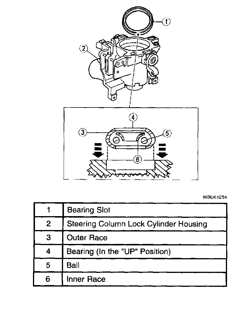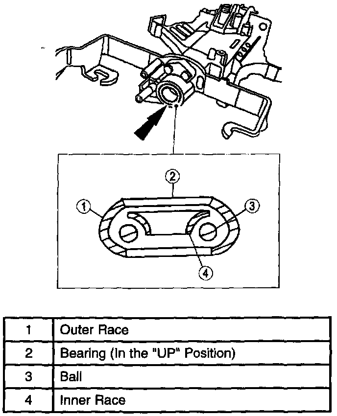 ^ Install the upper steering column bearing so that the inner race is visible when installed.
