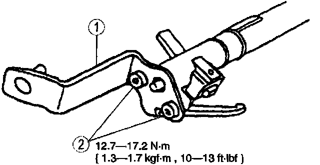 11. On automatic transmission equipped vehicles, install the transmission selector lever arm and support on the shift tube.