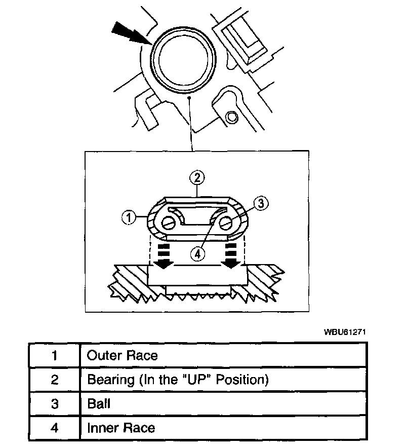 ^ The "UP" position of the bearing must be facing forward toward the engine.