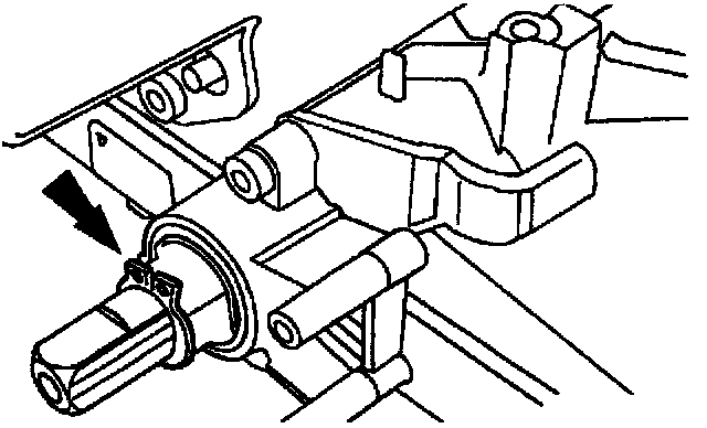 9. On fixed steering column equipped vehicles, remove the snap ring from the bottom of the steering column shaft.