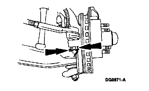 ^ Hold the tops of the steering gear to crossmember stud bolts to avoid damaging the steering gear fluid transfer tubes.