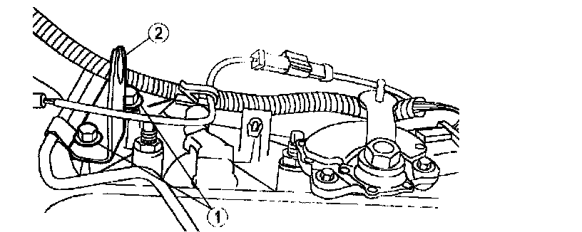 (2) Depress the lock tabs to release the shift cable and disconnect the shift cable from the shift cable bracket.