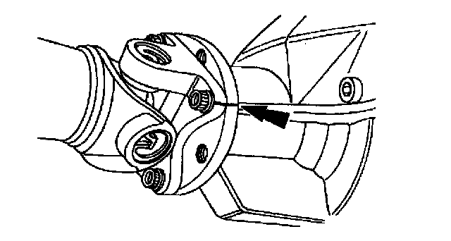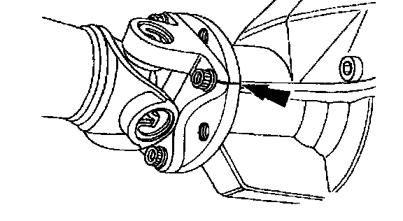 ^ To maintain initial propeller shaft balance, mark the rear propeller shaft yoke and axle flange so they may be installed in their original positions.