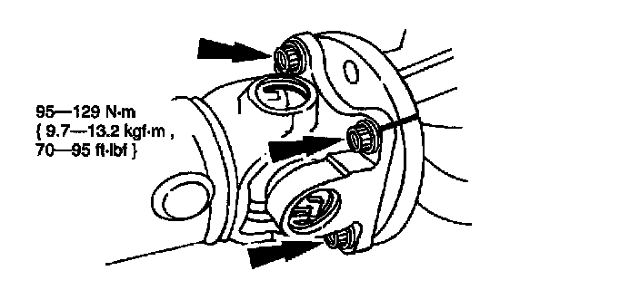 4. Install the rear propeller shaft bolts.