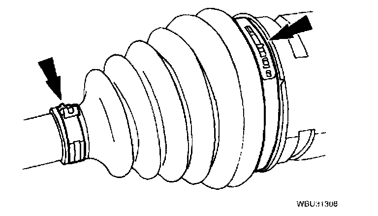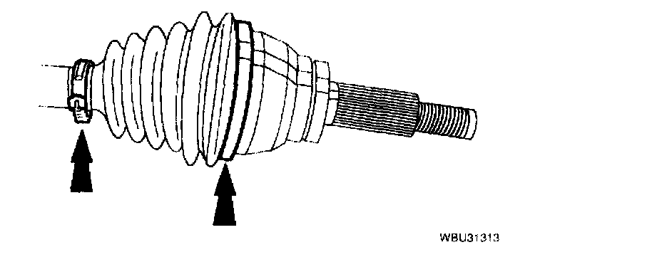 (2) Position the boot clamps on the outboard drive shaft boot.