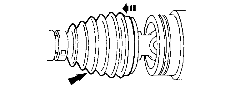 8. Remove the inboard driveshaft boot from the shaft assembly.