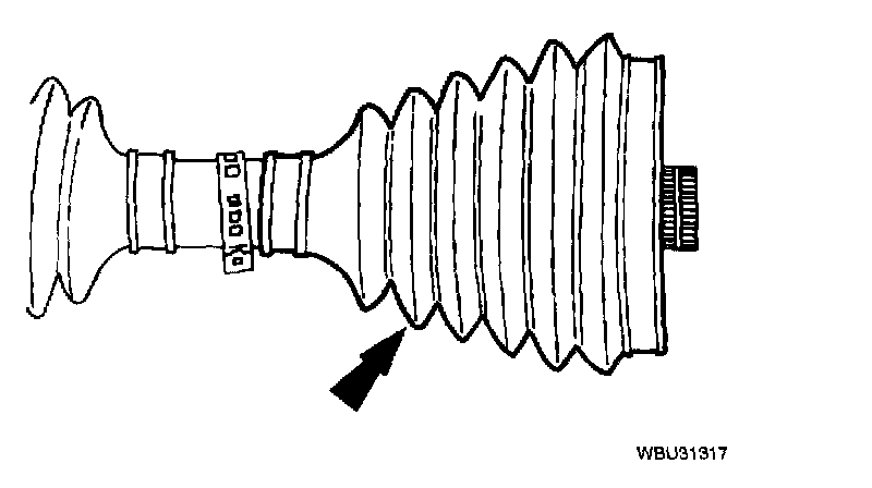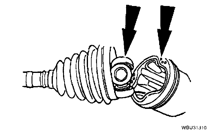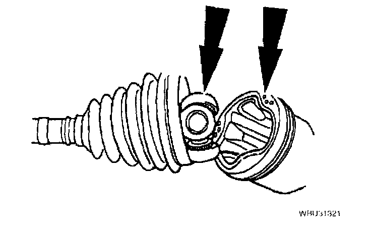 ^ If grease is contaminated, clean and inspect the joint for wear. Replace the outboard CV joint and shaft assembly if worn or damaged.