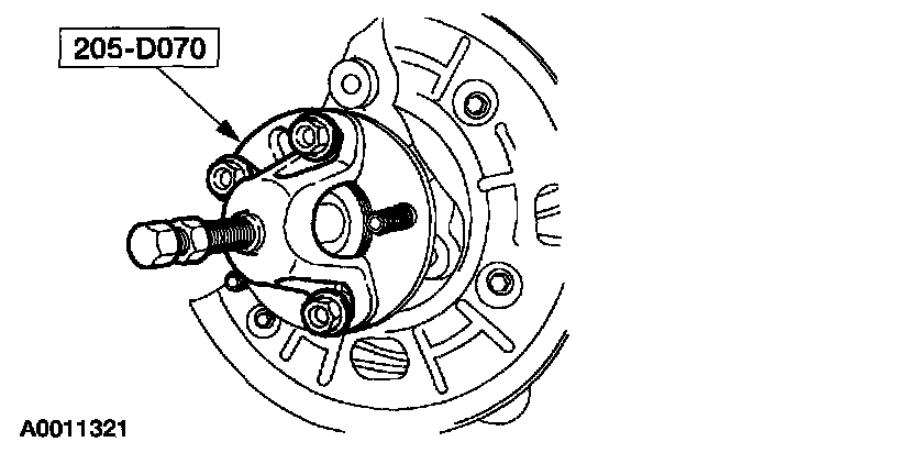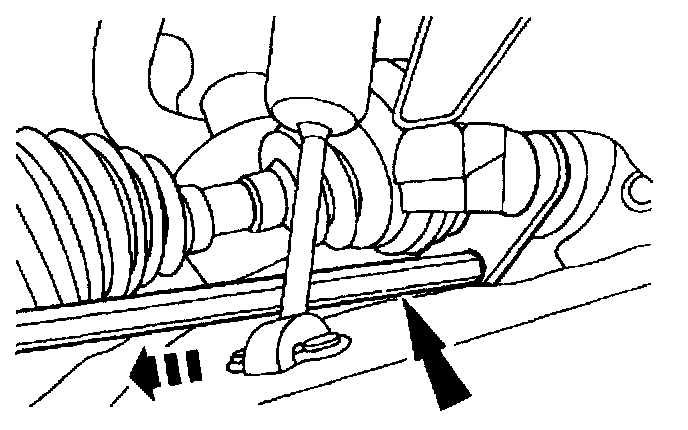 ^ Do not use a hammer to separate the outboard CV joint from the wheel hub. Damage to the outboard CV joint stub shaft threads and internal CV joint components may result.
