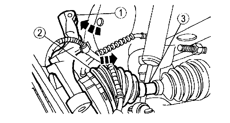 ^ Do not allow the disc brake caliper to hang suspended from the brake hose. Provide a suitable support.