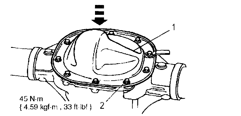 ^ Make sure the machined surfaces on both the rear axle housing and the axle housing cover are clean and free of oil before installing the new silicone sealant. The inside of the rear axle must be covered when cleaning the machined surface to prevent contamination.
