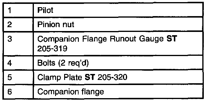 4. Position Companion Flange Runout Gauge ST 205-319 or equivalent on the companion flange.