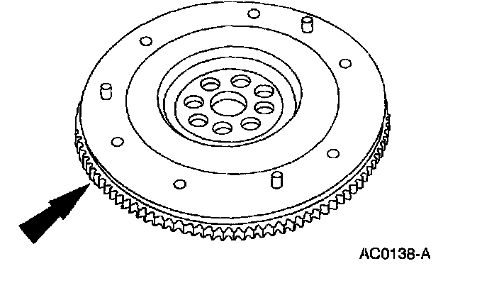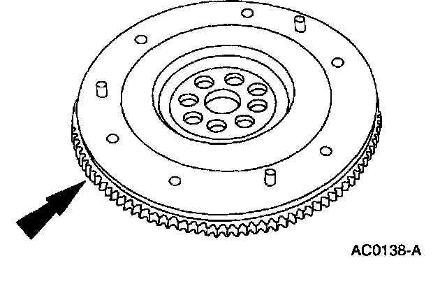 (1) The bevel on the flywheel ring gear must face the rear of the flywheel.