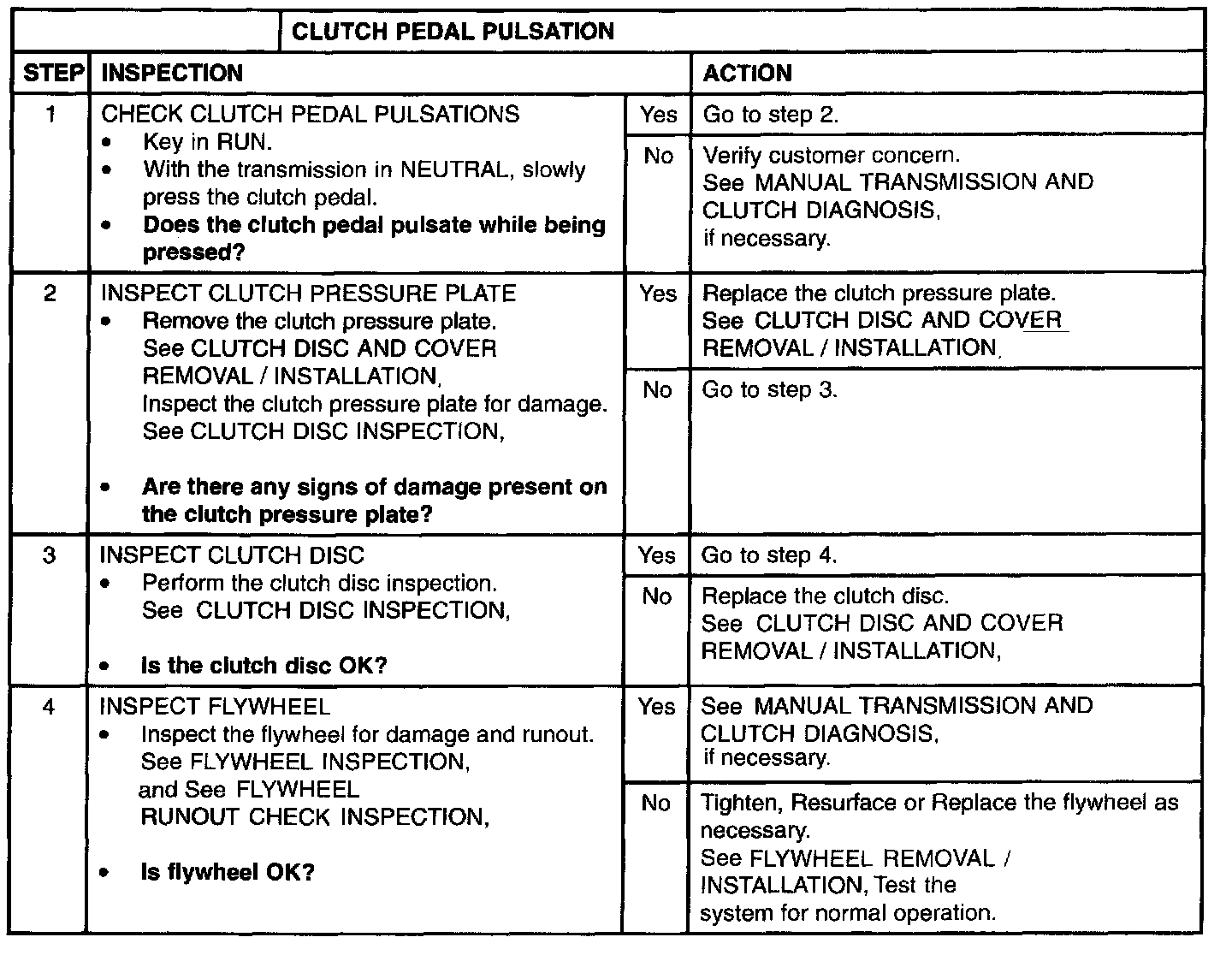 MANUAL TRANSMISSION/CLUTCH PINPOINT TEST 4: CLUTCH PEDAL PULSATION