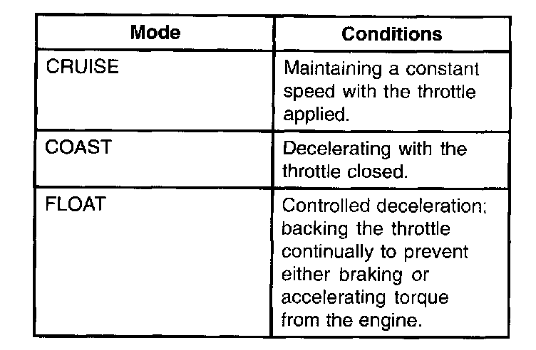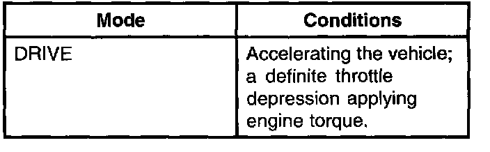 Operate the vehicle in all four modes and record those in which the noise occurs. Write down the kilometers-per-hour (miles-per-hour) range at which both noise and vibration occur. Evaluate rear axle noise with the transmission in DIRECT DRIVE and not in OVERDRIVE. Transmission noise can be mistaken for rear axle noise when in OVERDRIVE.