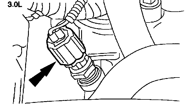 WATER TEMPERATURE SENDER UNIT REMOVAL / INSTALLATION - 3.0LNever remove the pressure relief cap while the engine is operating or when the cooling system is hot. Failure to follow these instructions can result in damage to the cooling system or engine or personal injury. To avoid having scalding hot coolant or steam blow out of the coolant reservoir when removing the pressure relief cap, wait until the engine has cooled, then wrap a thick cloth around the pressure relief cap and turn it slowly. Step back while the pressure is released from the cooling system. When you are sure all the pressure has been released, (still with a cloth) turn and remove the pressure relief cap. Failure to follow these instructions may result in personal injury.