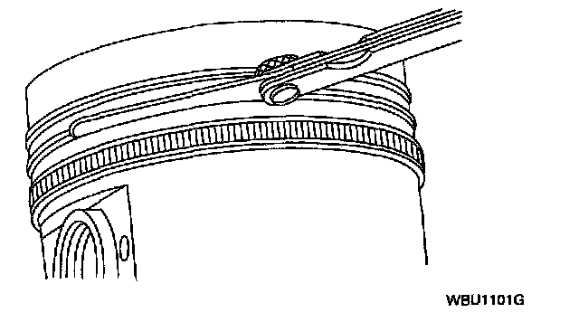 ^ Use care when fitting piston rings to avoid possible damage to the piston ring or the cylinder bore.