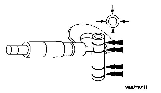 1. Measure the piston pin diameter in two directions at points shown. Verify the diameter is within specification.