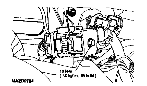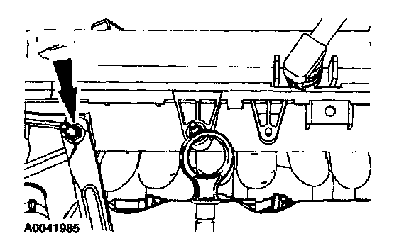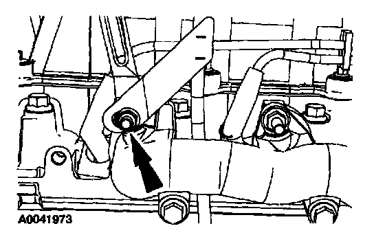 10. Remove the nut and the upper intake manifold support brace.
