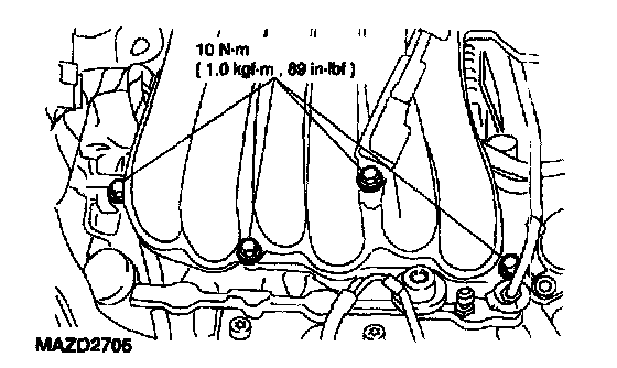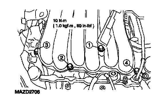 NOTE: Tighten the upper intake manifold bolts in the sequence shown.