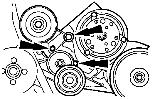 7. Remove the bolts and the A/C compressor mounting bracket.