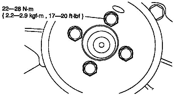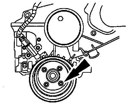 9. Remove the bolts and the crankshaft pulley.