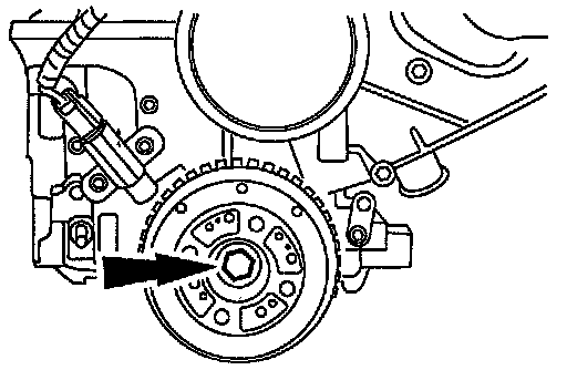 10. Remove the crankshaft damper bolt.