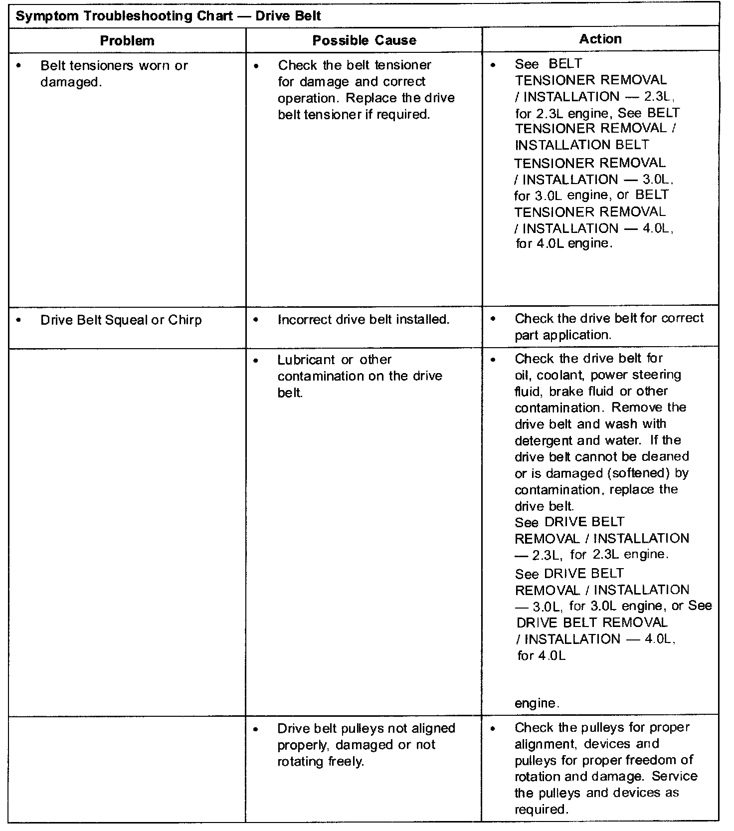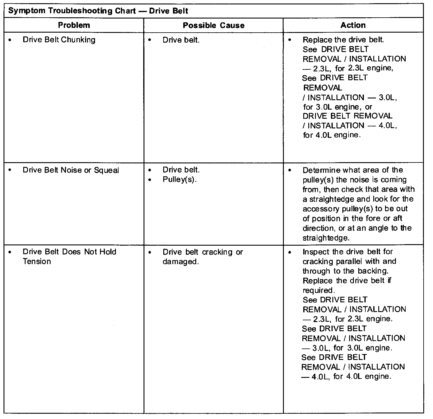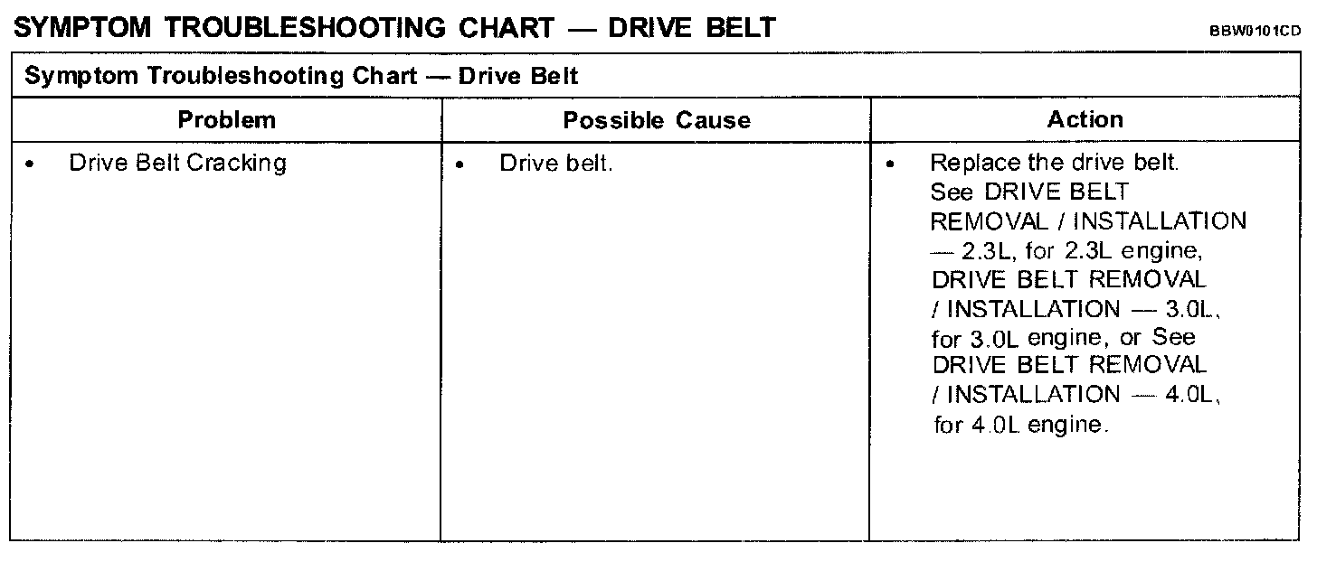Symptom Troubleshooting Chart - Drive Belt Part 3: