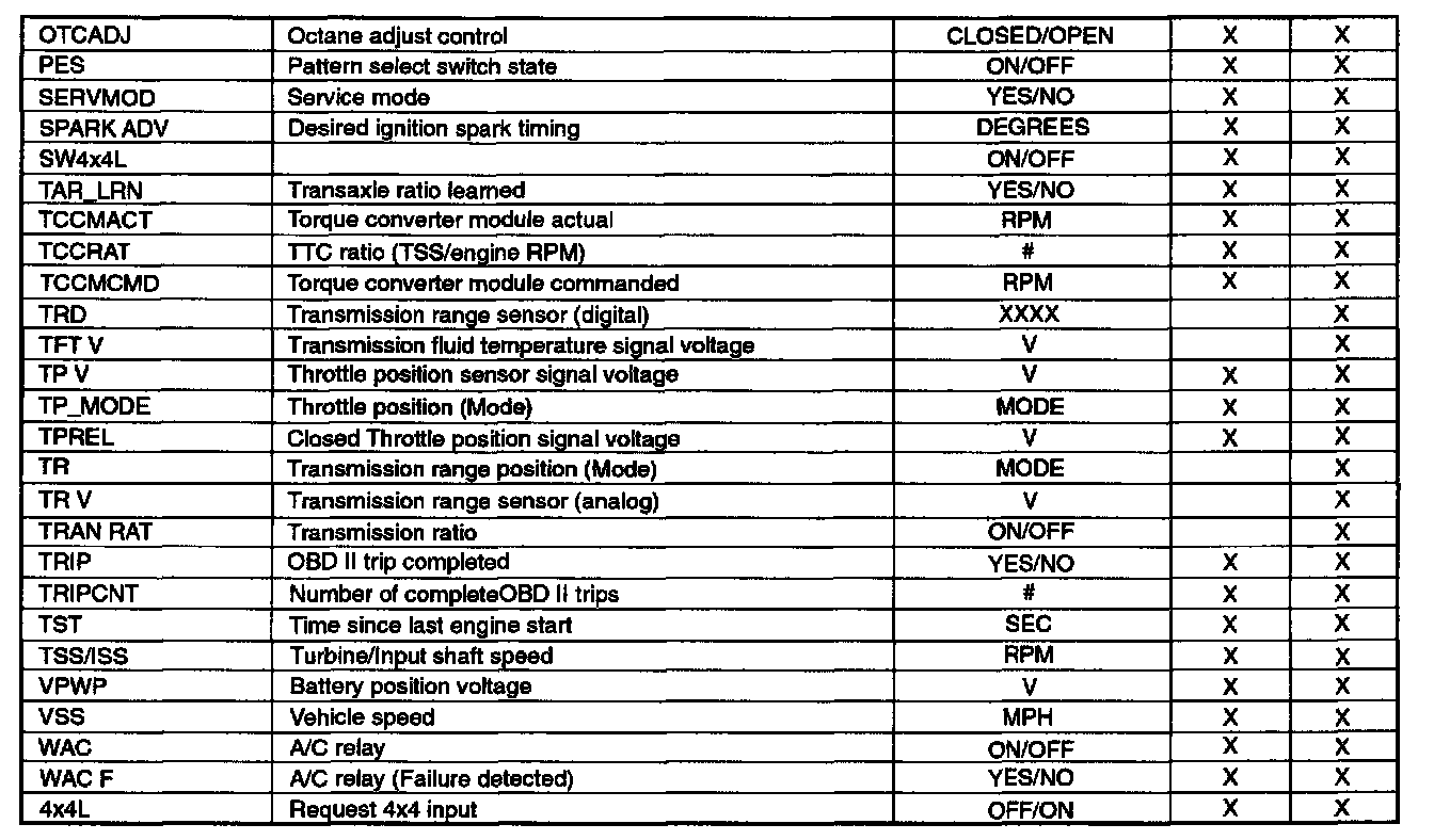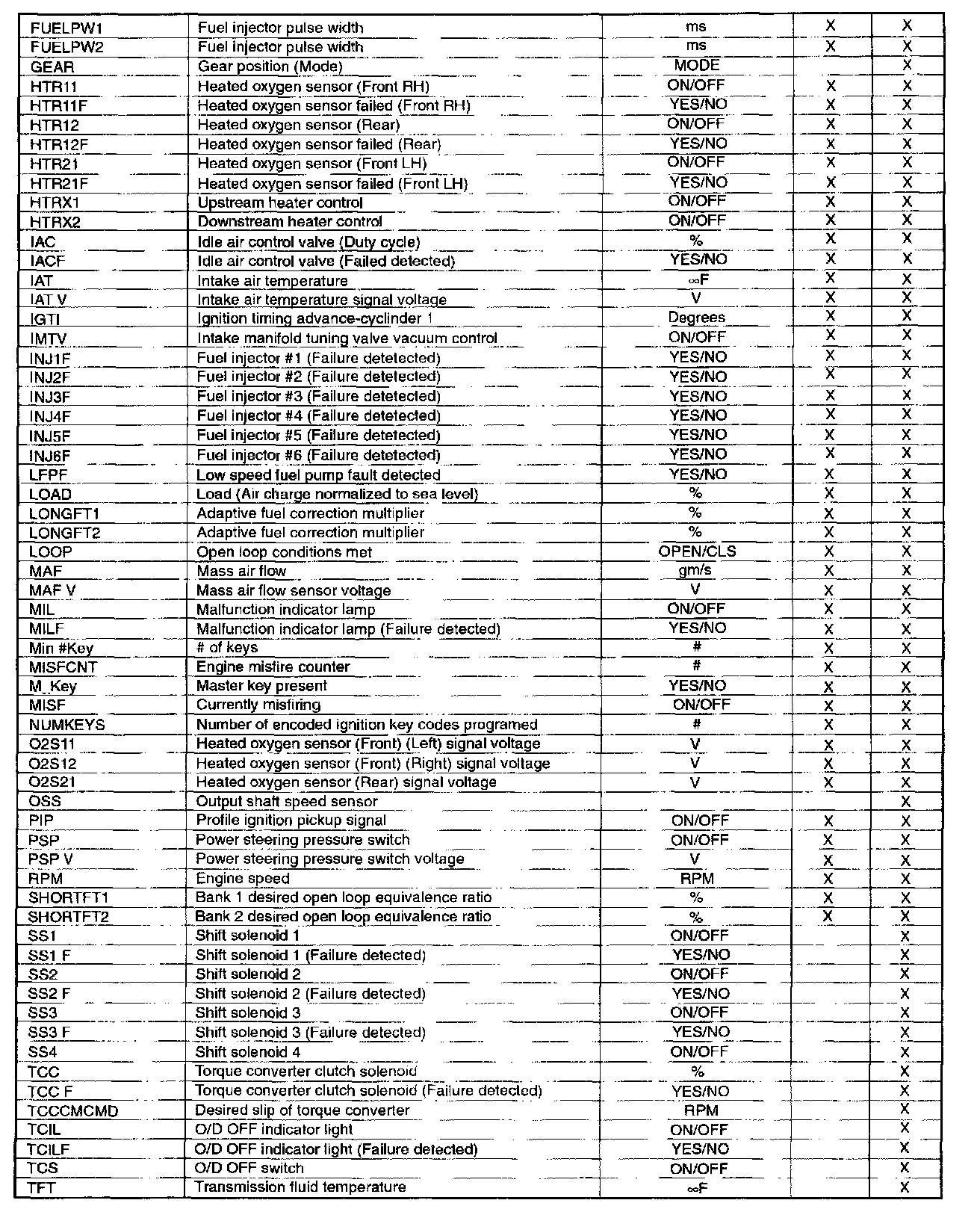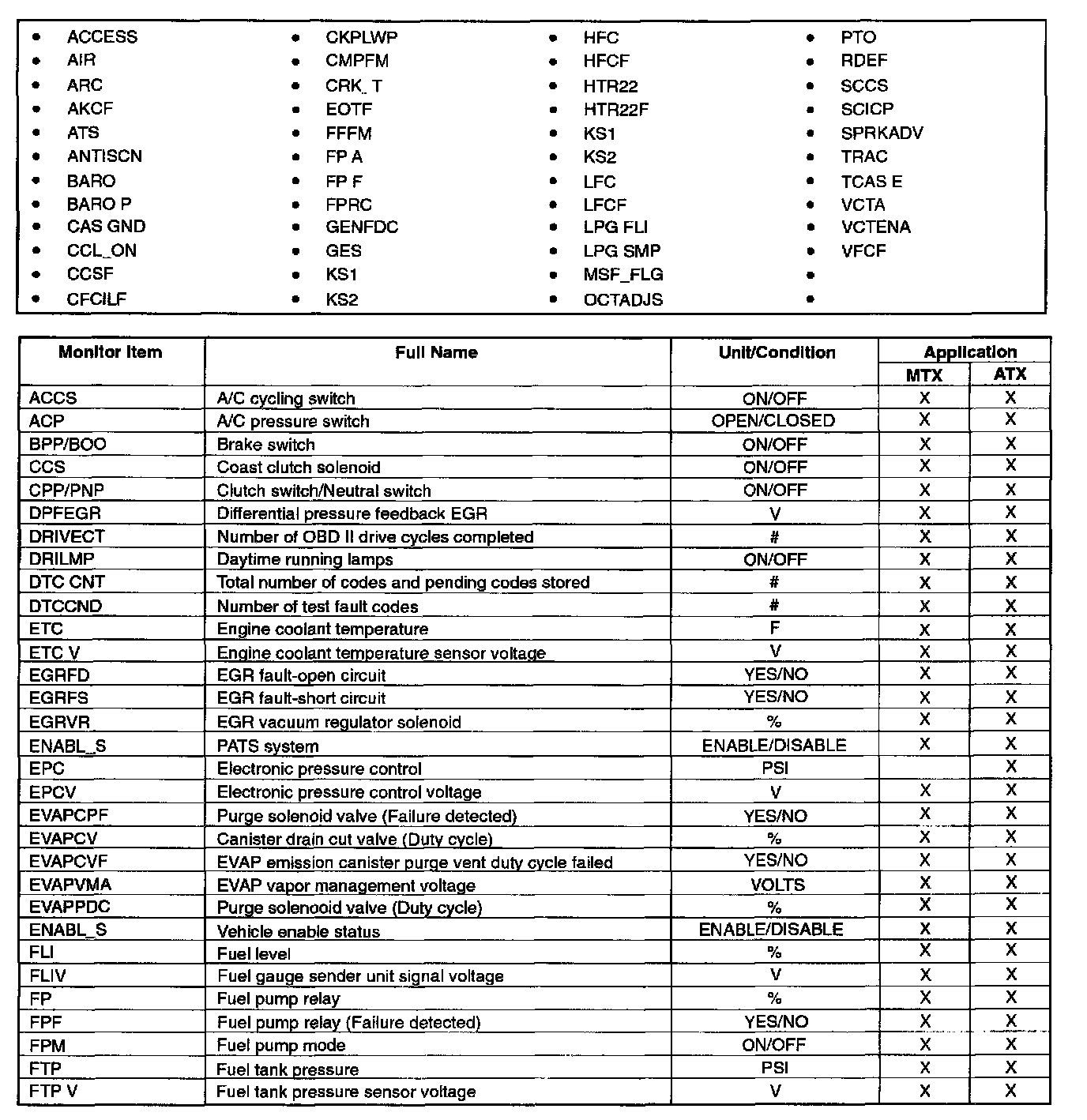 NOTE: The shown PIDs may display on the WDS or equivalent tester, but they are not used for inspection, because the devices are not applied for in this model.