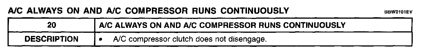 20. A/C Always on and A/C Compressor Runs Continuously