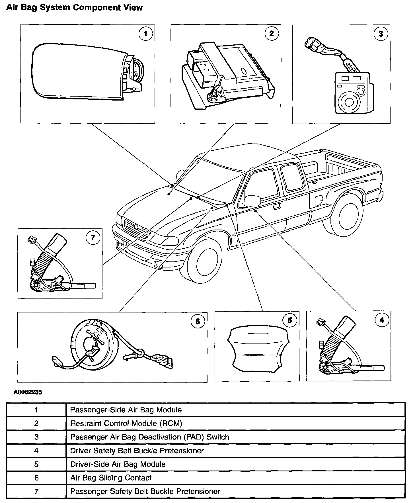 The RCM checks the air bag system for possible faults. If a fault is detected while the ignition switch is in the ON position, the RCM will illuminate the air bag indicator located in the instrument cluster.